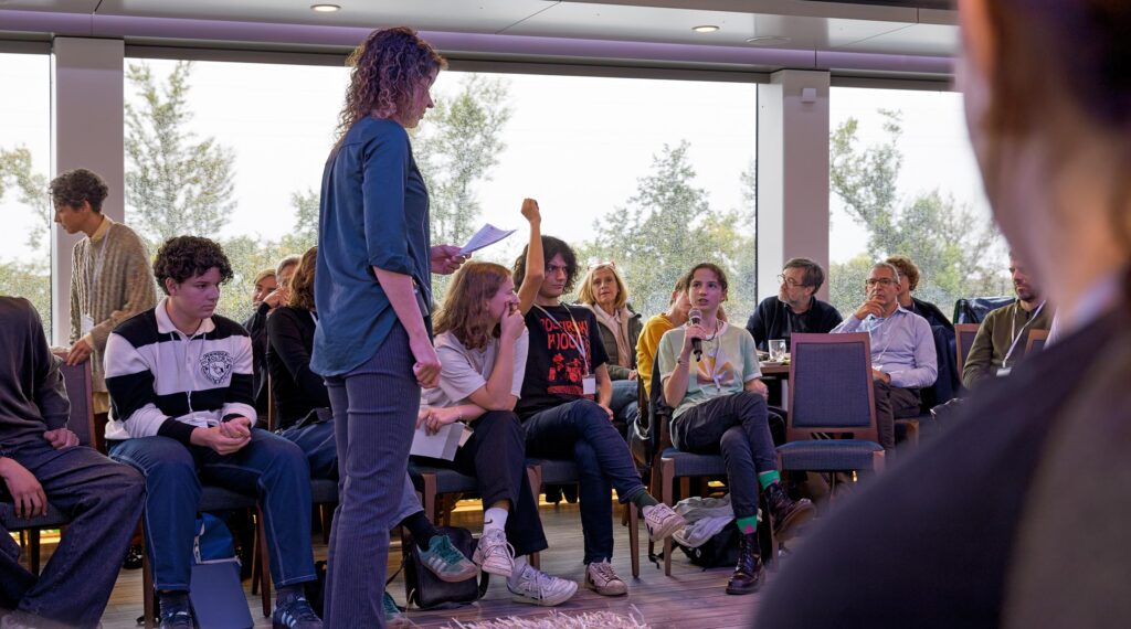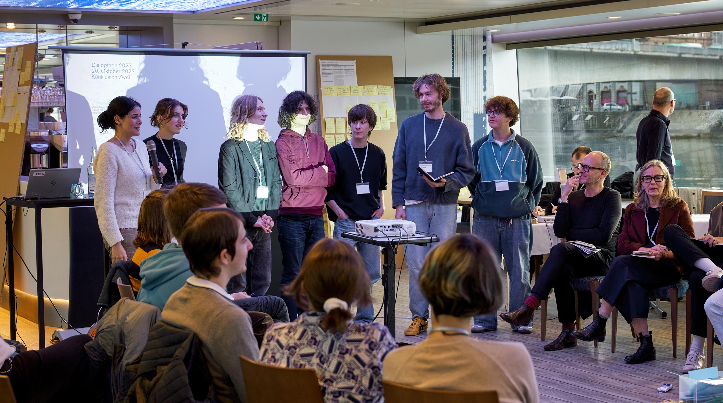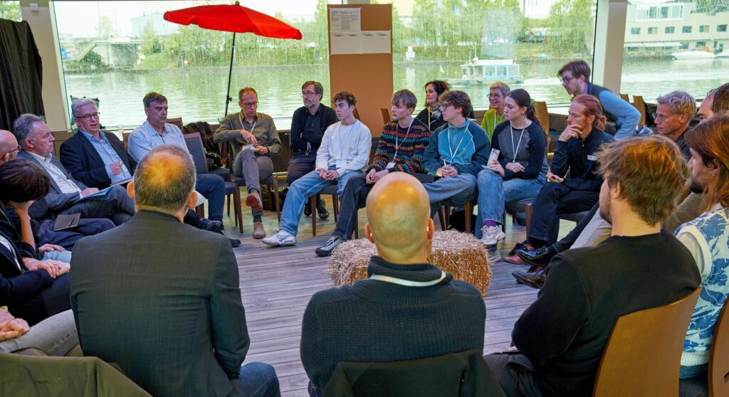 Zum Abschluss des Tages, während das Schiff wieder rheinaufwärts fährt, bringen die Dialogpartner und wir die Erkenntnisse zurück ins Plenum. Als Ergänzung zur Konklusion des ersten Dialogtages konnten wir als junge Generation individuell auf den Tag zurückblicken und unsere Erkenntnisse einbringen.